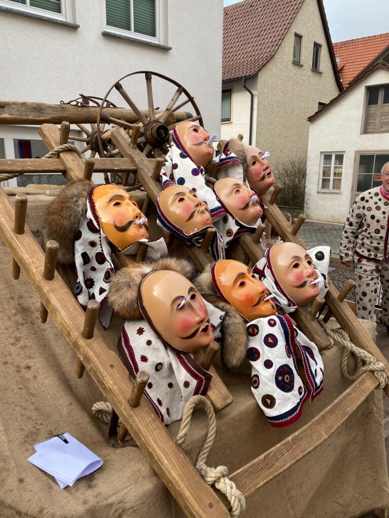 - Die Larve gehört zum Narrenkleid und wird nicht Zuhause gelassen.